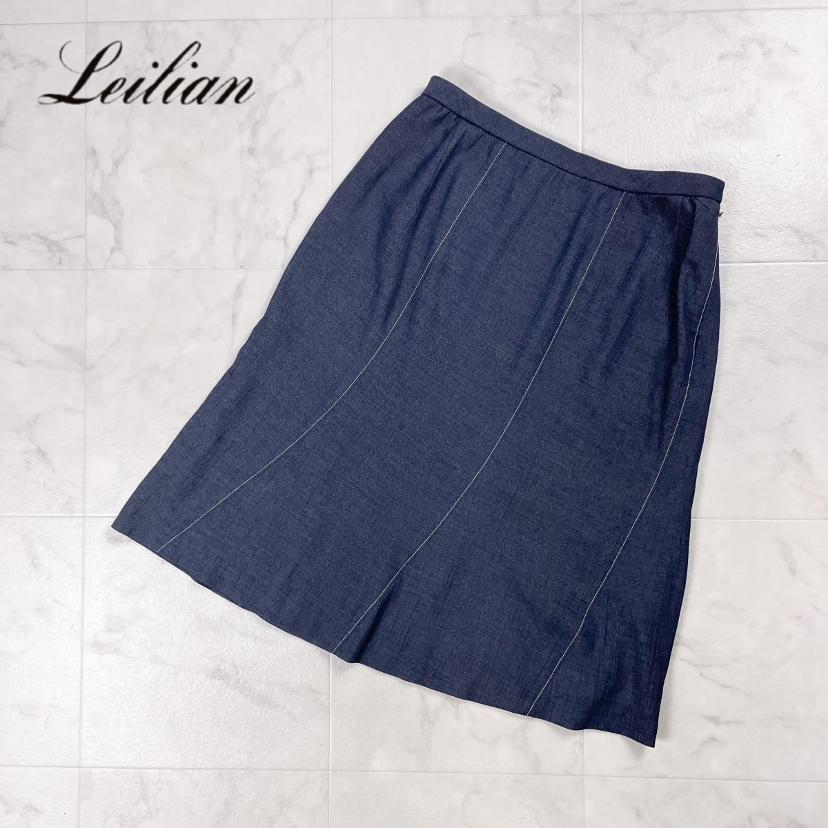 > Leilian レリアン デニムライクステッチスカート ミモレ丈 裏地付き ネイビー 紺 大きいサイズ サイズ13+*GD899