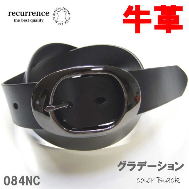 - ブラック 084 グラデーション オーバル ブラックニッケル 本革 牛革 ベルト