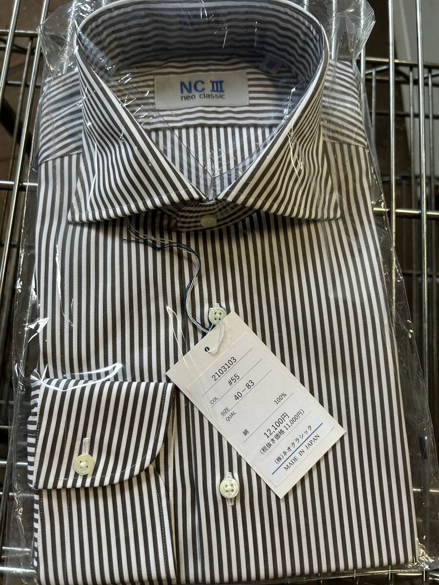 - Q) 新品 ブラウンストライプ 長袖 ワイシャツ ドレスシャツ 40-83 ブラウン系 日本製 綿100% M 12,100円