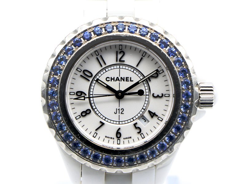 > 【 シャネル CHANEL 】 腕時計 J12 H1179 セラミック 33mm ブルーサファイアベゼル クォーツ デイト レディース □新着 70258-1