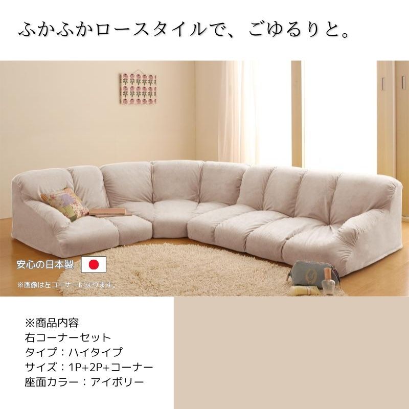 > フロアコーナーソファ flaum フラウム 右コーナーセット ハイタイプ 1P+2P+コーナー アイボリー