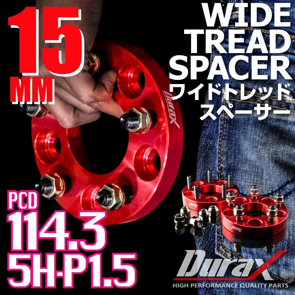 > DURAX ワイドトレッドスペーサー 15mm PCD114.3 5H P1.5 ステッカー付 レッド 2枚 ホイール スペーサー ワイトレ トヨタ ホンダ ダイハツ