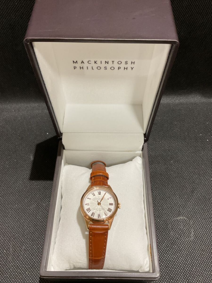 - 【P-3127】マッキントッシュ 腕時計 クォーツ 箱有り MACKINTOSH 電池切れ 社外レザーベルト