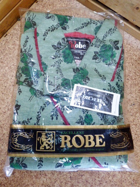 - む172●日本製のローブ●Mサイズ/ガウン/グリーン系/ローズ柄/ガウン/レトロ