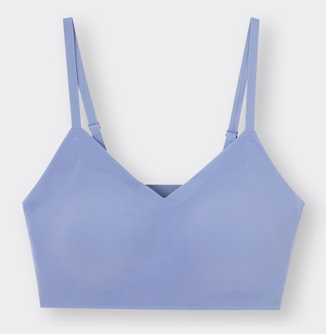 - XL 新品 GU ノンワイヤーブラ ブルー 接触冷感機能 ストレッチ シームレス ブラジャー ストラップ調節可(取り外し不可) カップ取り外し可