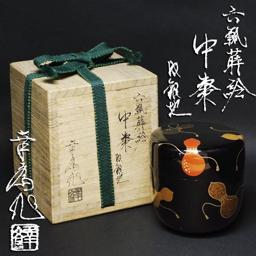 - 竹内幸斎造 六瓢箪蒔絵 銀地 棗 中棗 漆芸 漆器 共箱 工芸 時代 骨董 煎茶道具 茶道具 美品 古美術品