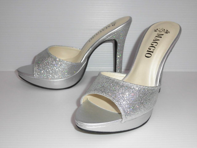 - 即決 LL(24.5~25cm) MAGGIO FR1055 シルバー 超美脚 婦人 レディース ミュール サンダル パーティー 水商売 スナック披露宴 ハイヒール