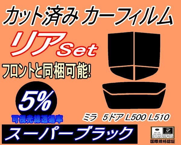 - カーフィルム スーパーブラック カット済み リアセット ミラ 5ドア L500 L510 (s) スモーク L500S L500V L502S L510S L510V 5ドア用