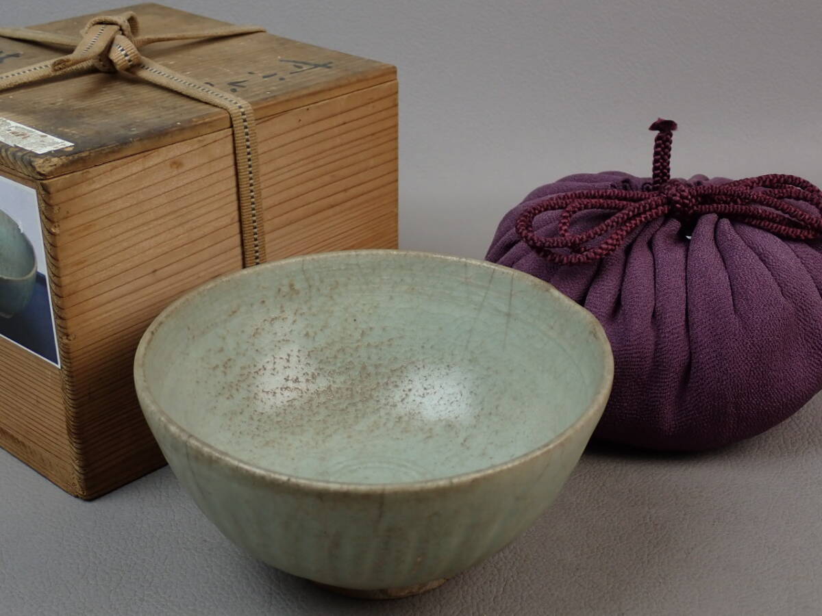 > 【骨董・茶道具】★古い 宋胡録 スンコロク 寸小六★★青磁鎬文茶碗 gp030vb 人形手 中国古玩