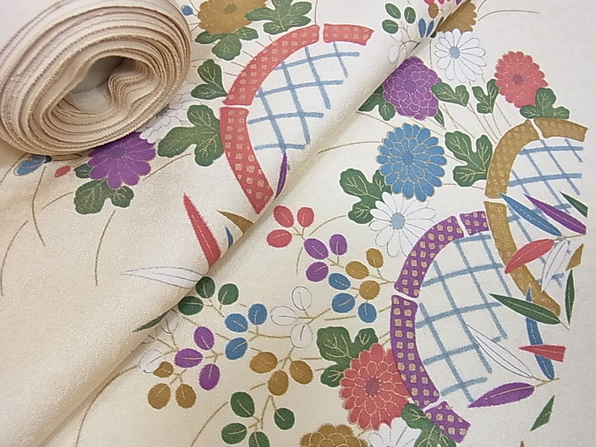- eふれんず◆付下げ 反物 着尺 籬花文 金彩 丹後縮緬 正絹 未使用品 未仕立て◆bm1741