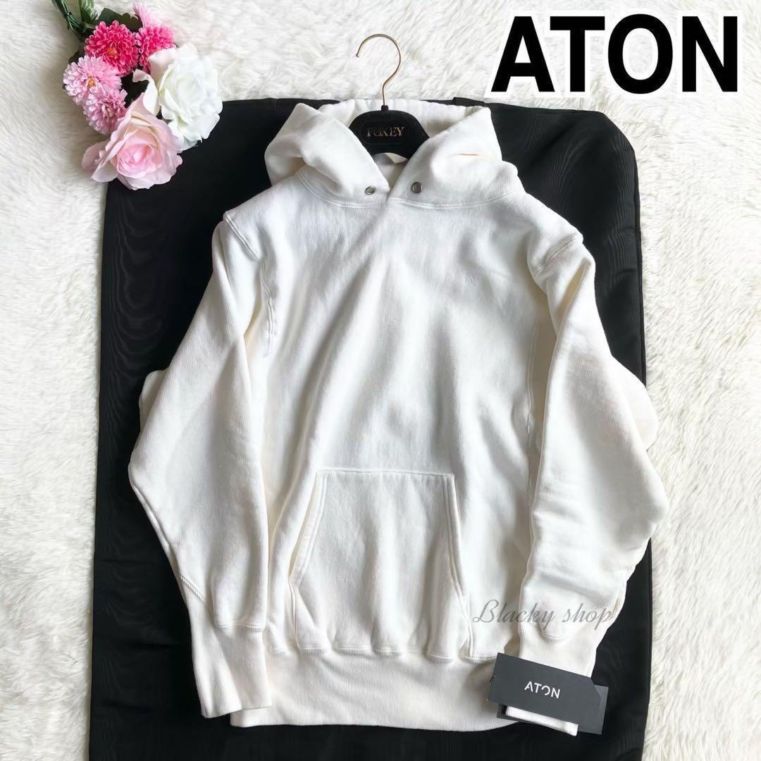 - ATON エイトン GARMENT DYE URAKE パーカー 未使用 タグ付き ホワイト 2 ユニセックス プルオーバー ジャージー 裏毛 ロゴ