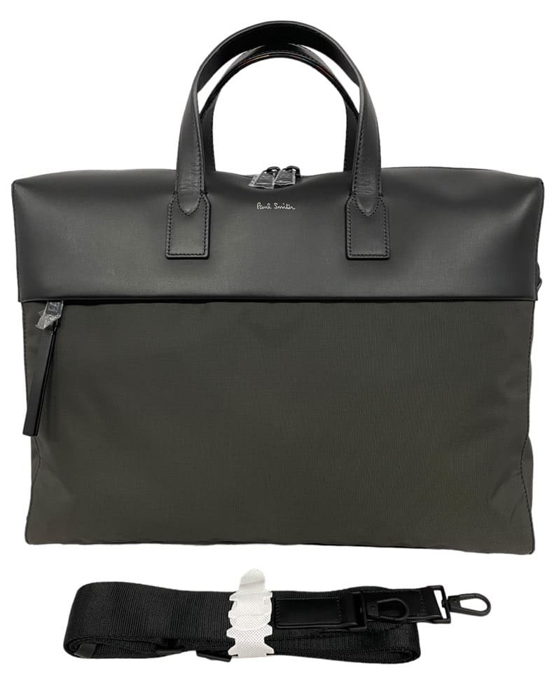 - 未使用 ポールスミス ブリーフケース 2WAY ビジネスバッグ メンズ グレー レザー ブラック Paul Smith 【中古】
