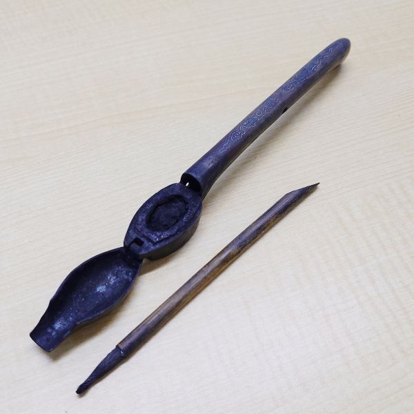 - 当時物 明治初期 矢立 携帯用筆入 筆付き アンティーク 骨董品 素材不明