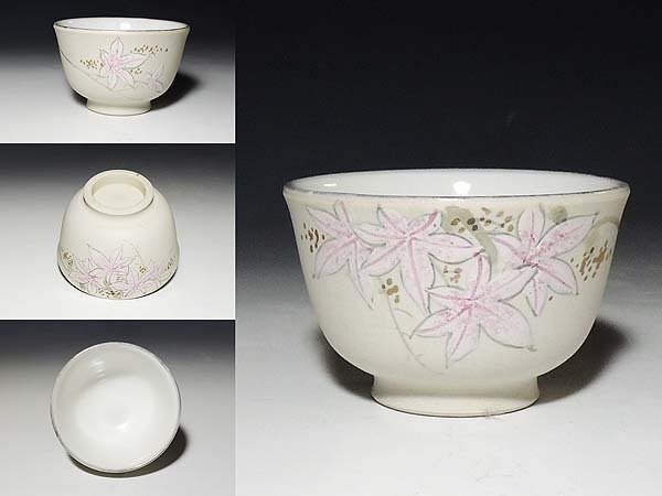 - 【桃】酒器ぐい呑み:萬古焼色絵紅葉図