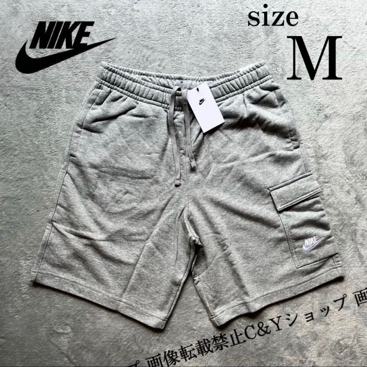 - 送料無料 Mサイズ 新品 NIKE ナイキ ハーフパンツ スウェット グレー フリース ショートパンツ カーゴパンツ 刺繍 DD7015-063