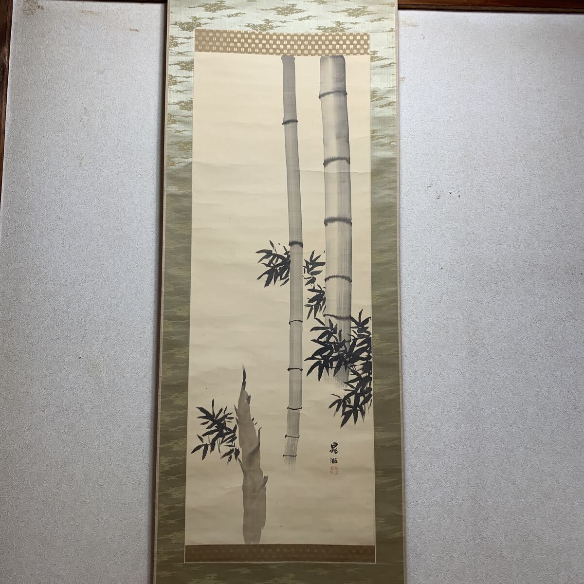 - 模写 時代物 掛軸 墨竹図 絹本 『鴨下晁湖』