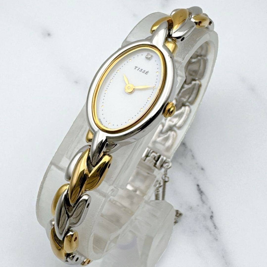 - 稼働 SEIKO セイコー 1Pダイヤ オーバル コンビカラー ブレスレットウォッチ 腕時計 レディース シルバー ゴールド クオーツ
