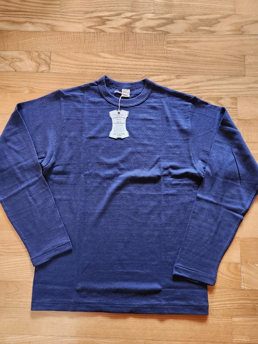 - 新作 送料込★WAREHOUSE ウエアハウス 5906 長袖クルーネックTシャツ 無地 日本製 ネイビー XL