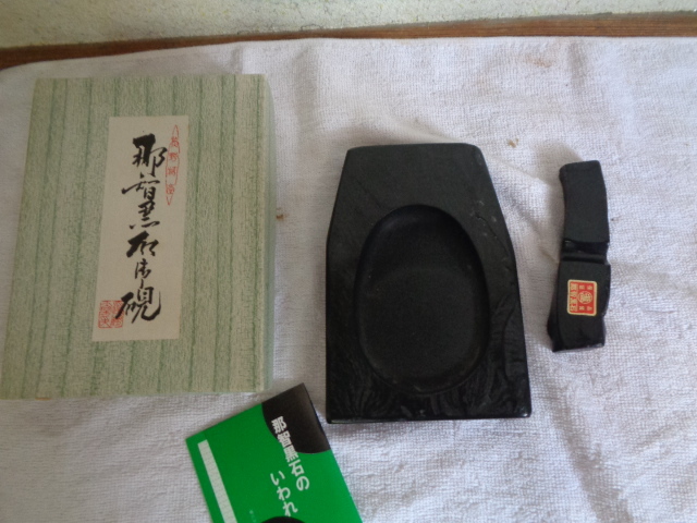 - 那智黒石-硯&筆置き/箱入美品-長期保管品