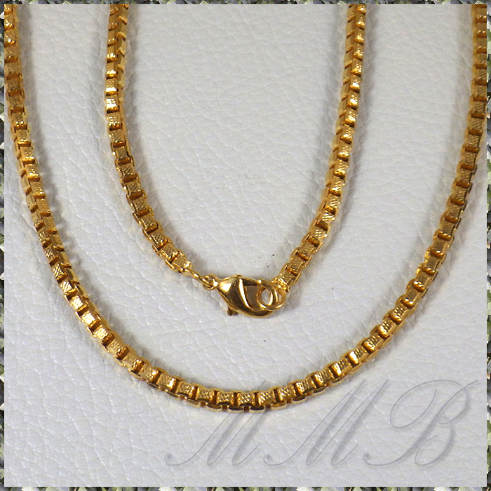 > [NECKLACE] 18K Gold Filled メッシュカット デザイン ボックス ベネチアンチェーン ゴールド ネックレス 3x500mm (19g) 【送料無料】