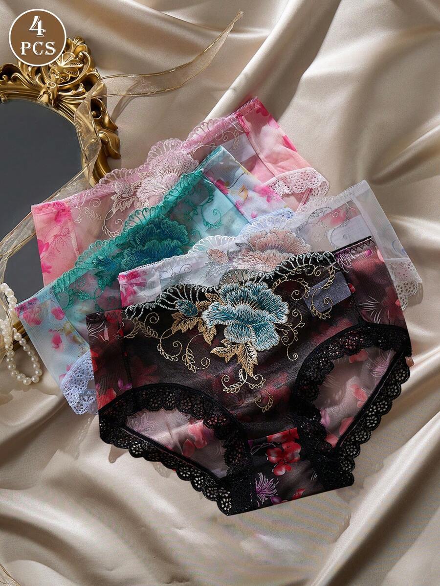 - インティメート ショーツ 4枚入り レディース セクシー レース 刺繍 ショーツ ローウエスト コットン クロッチ 快適 通気性
