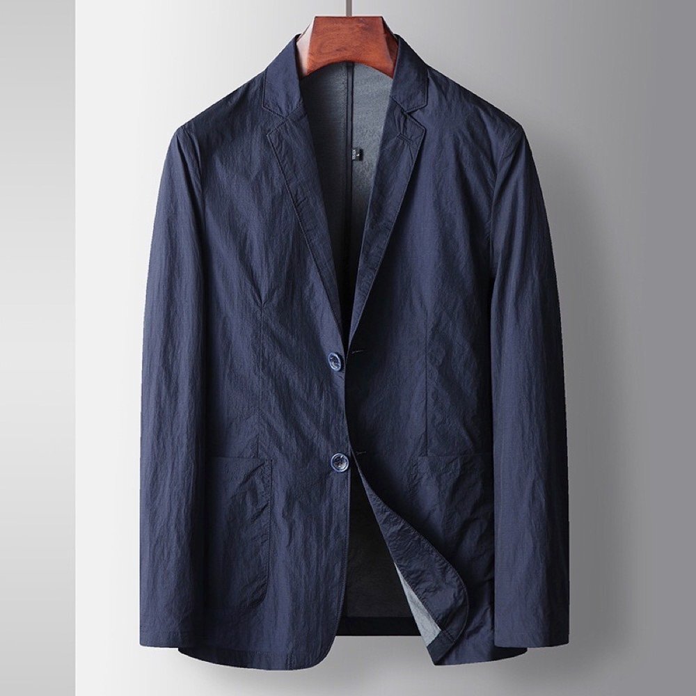 - テーラードジャケット 薄手 春夏 メンズ ブレザー ビジネススーツ サマージャケット 長袖 コート UVカット 日焼け防止 ネイビー L/175