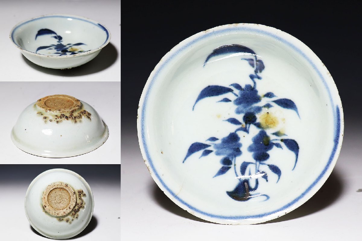- 【桃】古染付:明末清初期染付草花図小皿