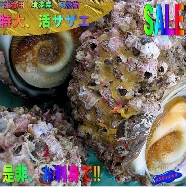 > 超特大!! 刺身用「活さざえ5L-3kg」1粒200g位/素潜り、天然物...活きたままお届けします!!