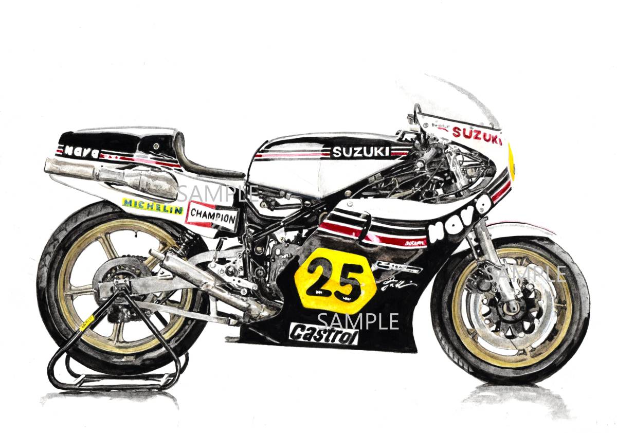 - A4プリントです スズキ RG500(XR40)1980 水彩画 バイクイラスト