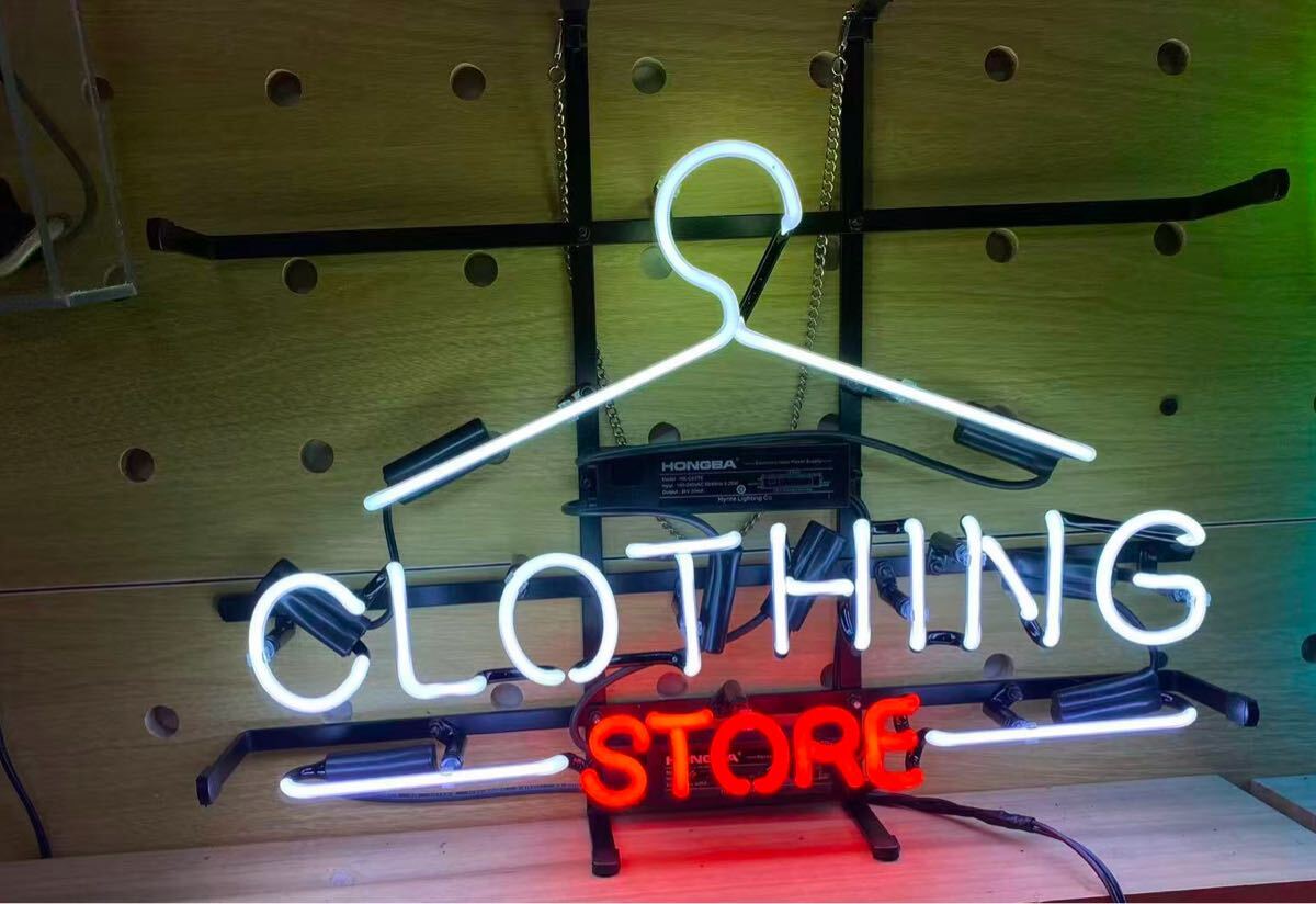 - オーダー ネオンサイン CLOTHING STORE ハンガーデザイン ガラス LED 看板 壁掛け ネオン管 インテリア