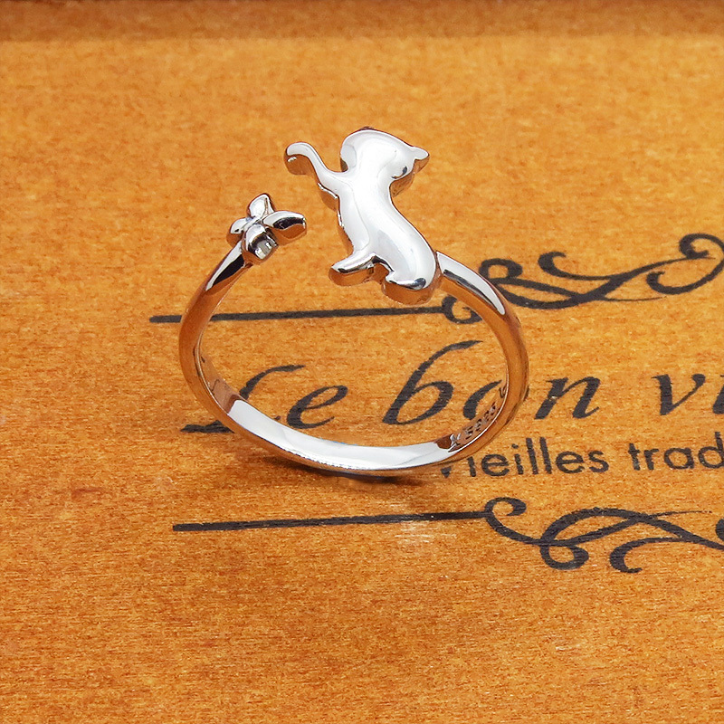 - シルバー925 蝶とたわむれる子猫のシルエットをかたどったオープンリング フリーサイズ