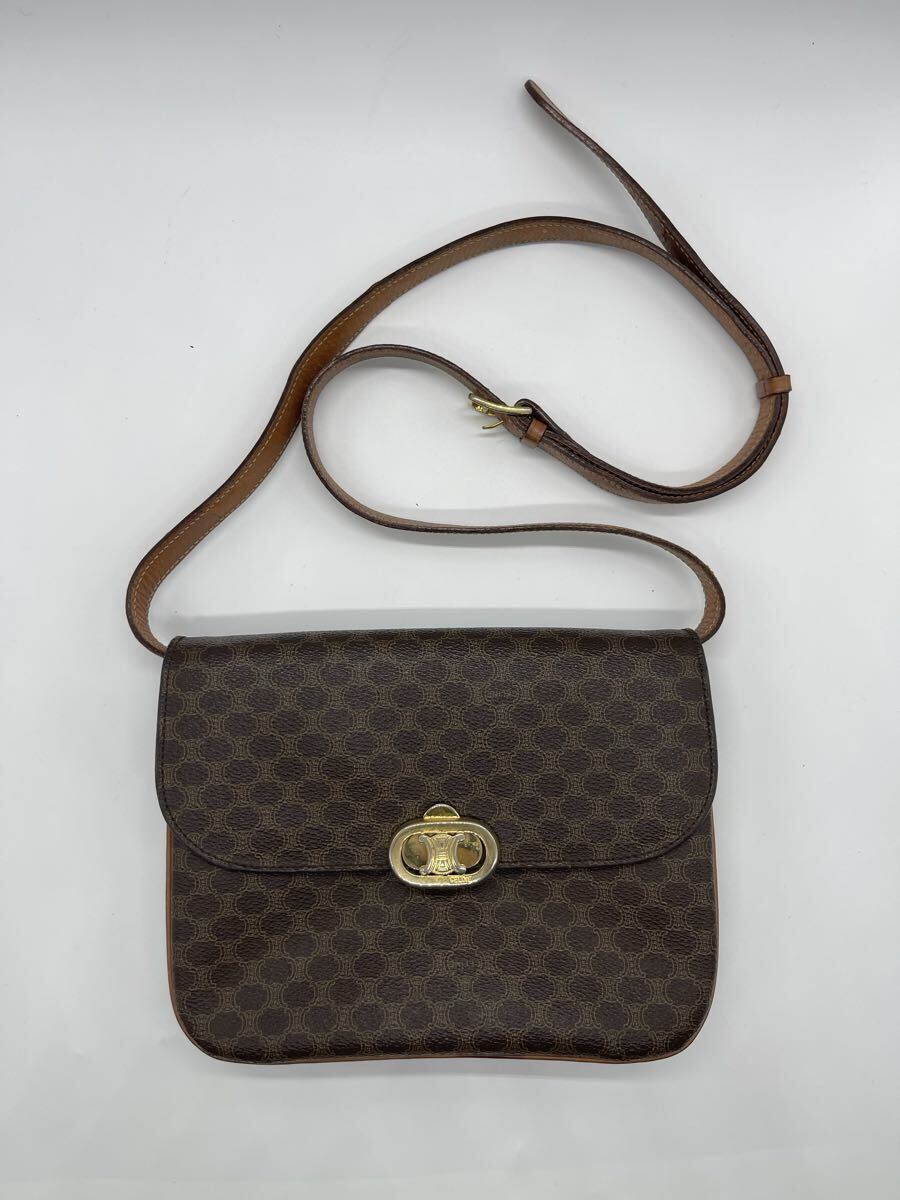> 1円スタート CELINE セリーヌ マカダム トリオンフ ショルダーバッグ ヴィンテージ F/08 イタリア製 旧ロゴ 3層 レザー ブラウン 希少 美品