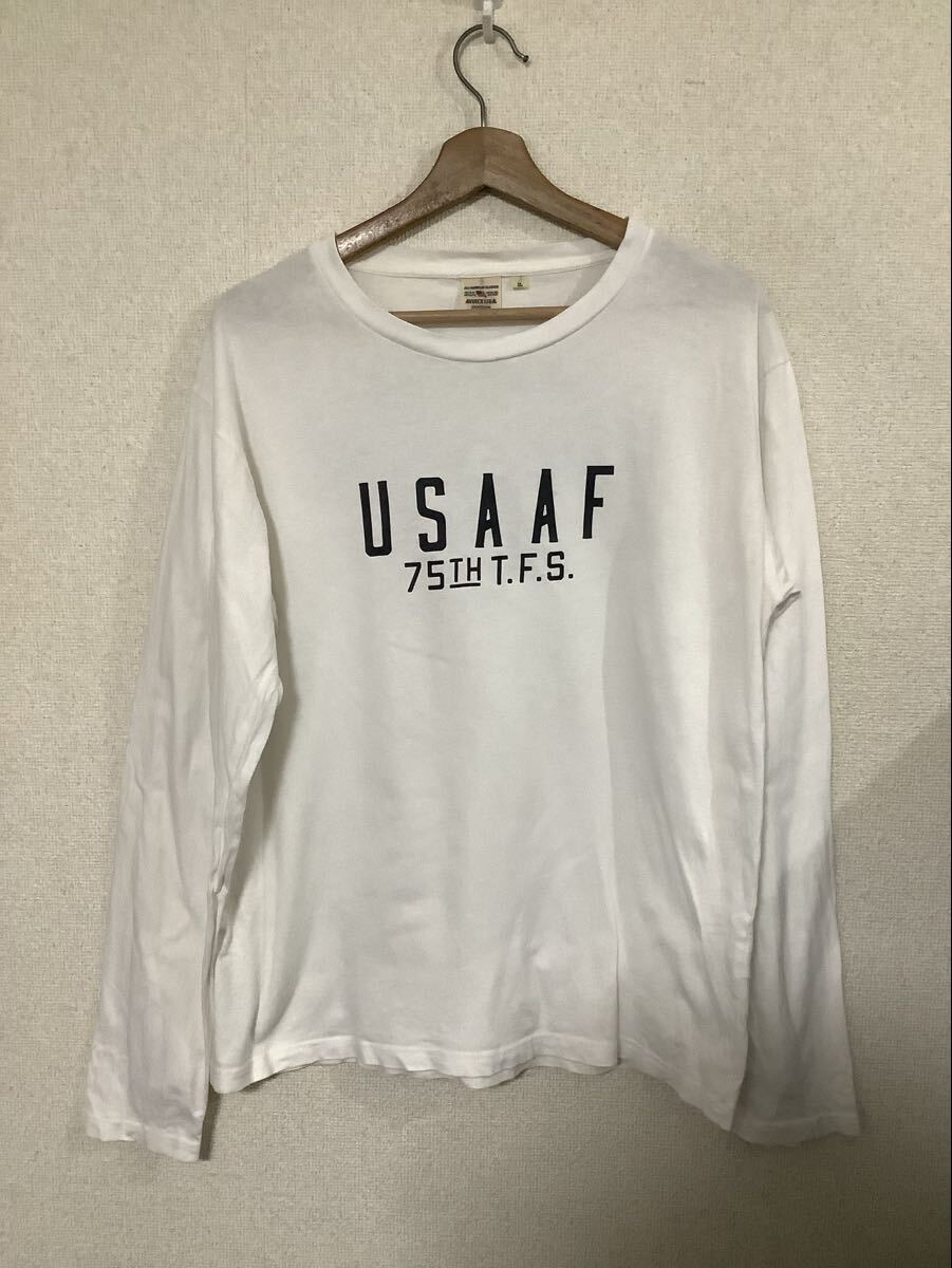 > AVIREX アビレックス ミリタリープリント 長袖Tシャツ カットソー ホワイト ロンT トップス アメカジ ビンテージ メンズ XL