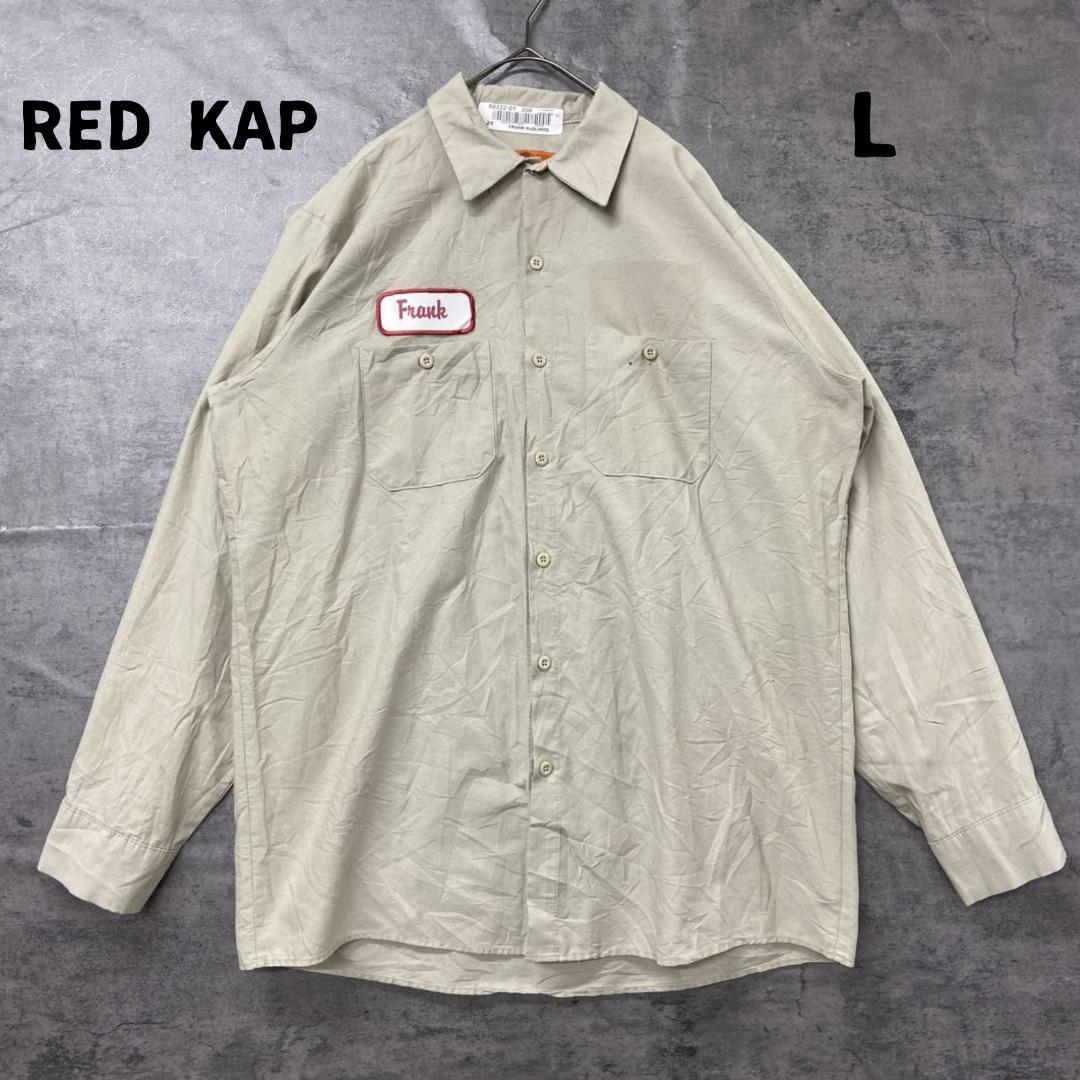 - レッドキャップ ワークシャツ 長袖 ベージュ系 刺繍ワッペン付き【6097】