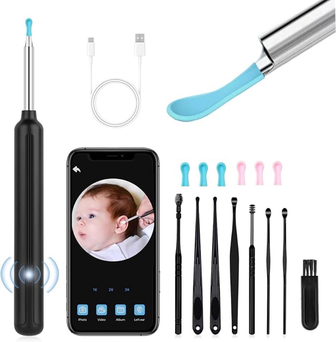 - 耳かき カメラ付き 500万画素 ワイヤレス イヤースコープ LEDライト 耳垢除去 スマホ連動 無線 録画 Type-C充電