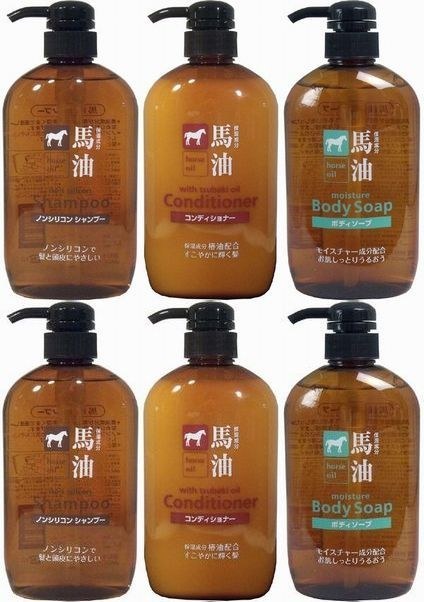 > 馬油シャンプー & 馬油コンディショナー& 馬油ボディーソープ 各600ml 各2本 髪、お肌と同じ弱酸性で、お肌、髪と頭皮にやさしい!