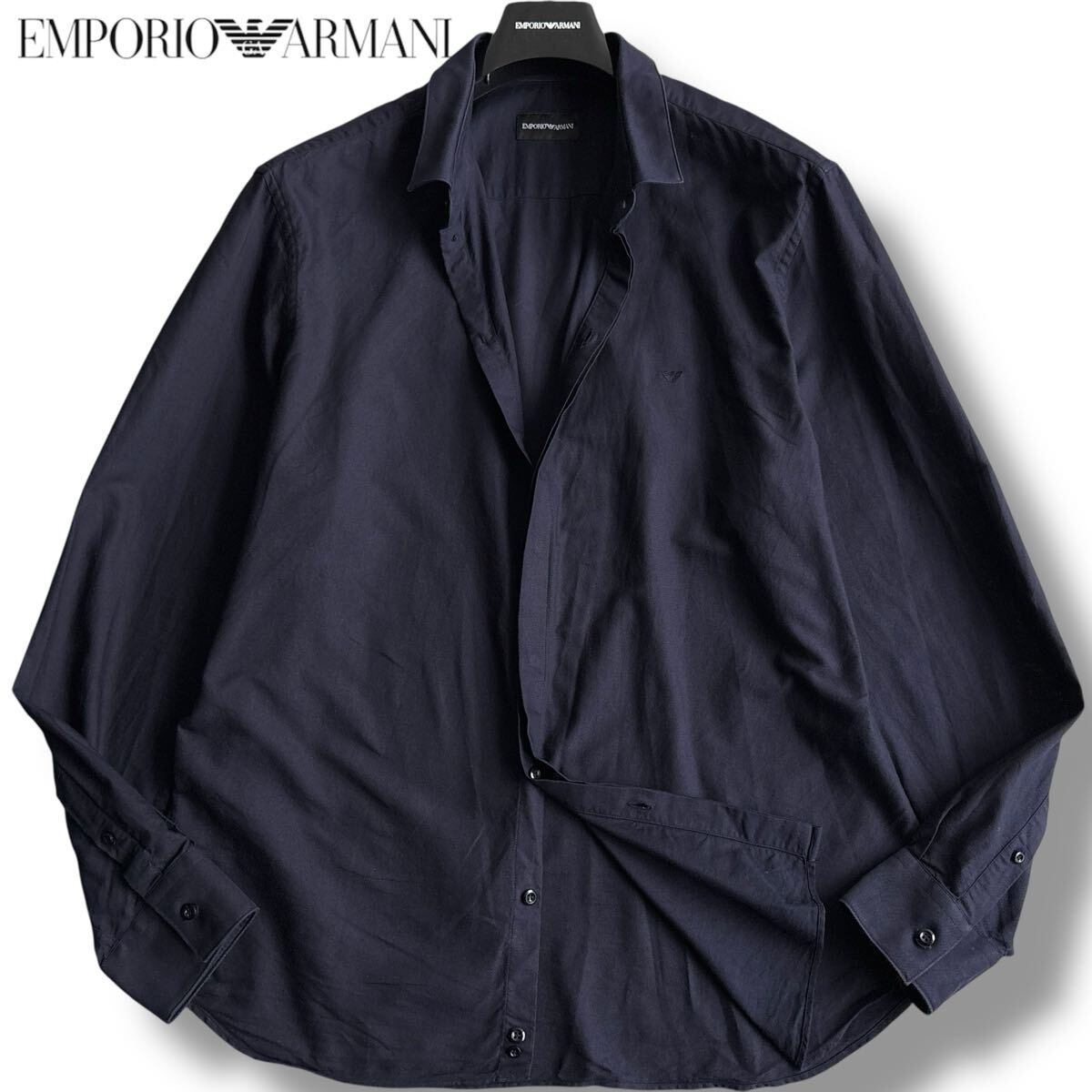 - 極美品■EMPORIO ARMANI【XXL相当】希少サイズ イーグル 刺繍ロゴ 長袖シャツ 比翼 コットン ダークネイビー エンポリオ アルマーニ
