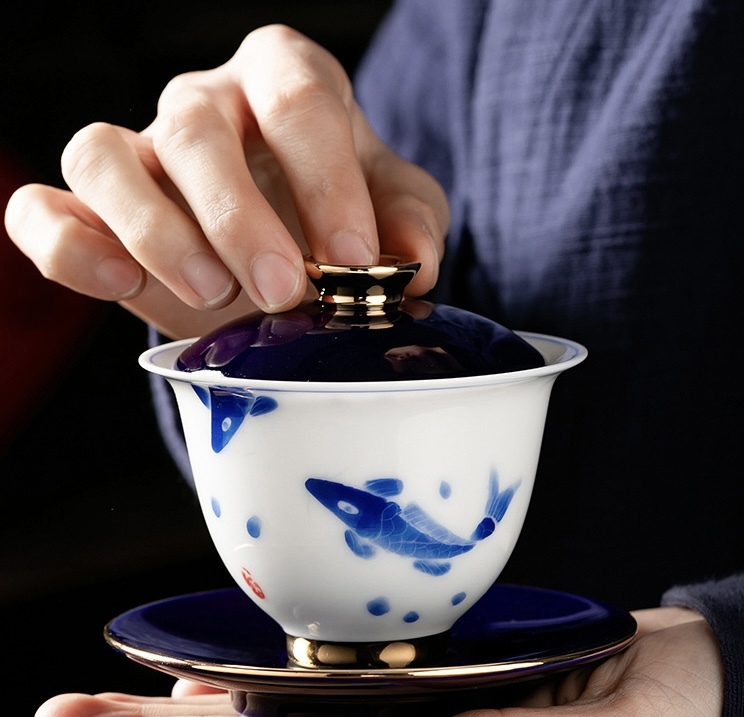 - 「魚水」釉下彩蓋碗 中国茶器(京隆堂)
