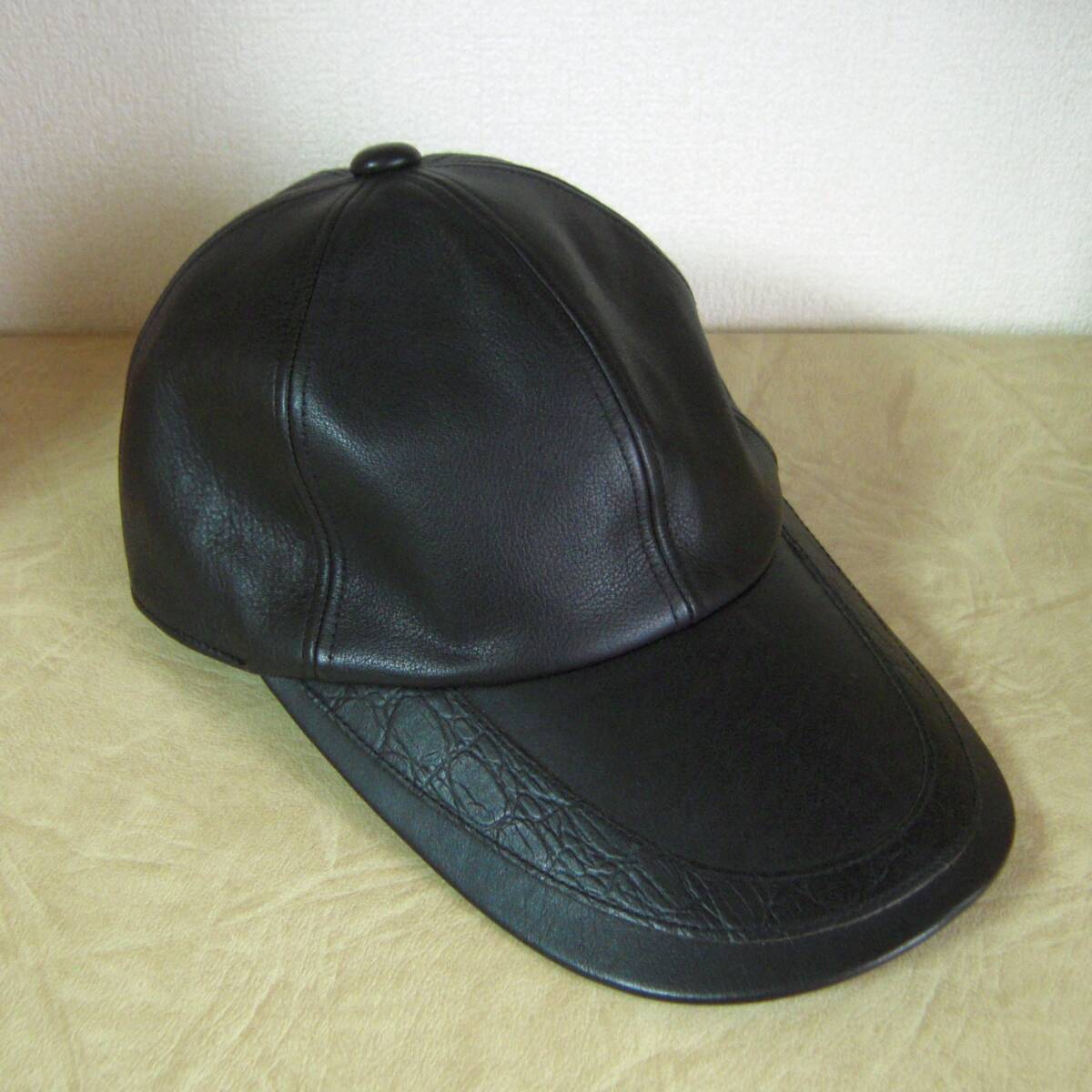 - santafe サンタフェ 牛革 レザーキャップ 黒 ロングブリム フリーサイズ(59㎝前後)