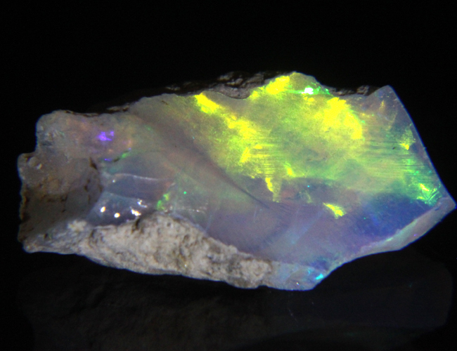 - 【オーロラ爆発】天然ファイアーオパール 抜群の遊色 母岩付き原石 3.00ct エチオピア【610】