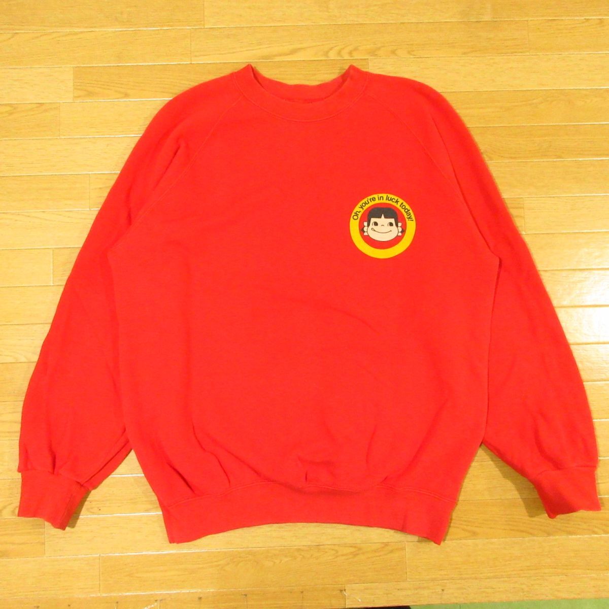 > ◎peko ペコちゃん ラグラン スウェット トレーナー 長袖 ワンポイント キャラクター ヴィンテージ メンズ 赤 M相当◆AA4699