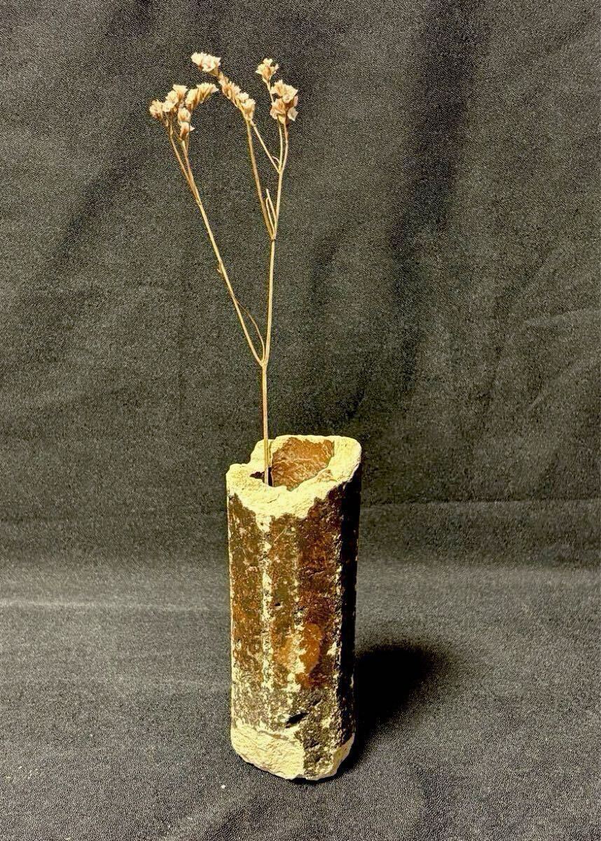 > 珍品の茶陶陶片です!桃山から江戸初期 古美濃椿手の九角面取り筒型花入の陶片 野花の投入に!水も張れます!すこぶる状態よしです!