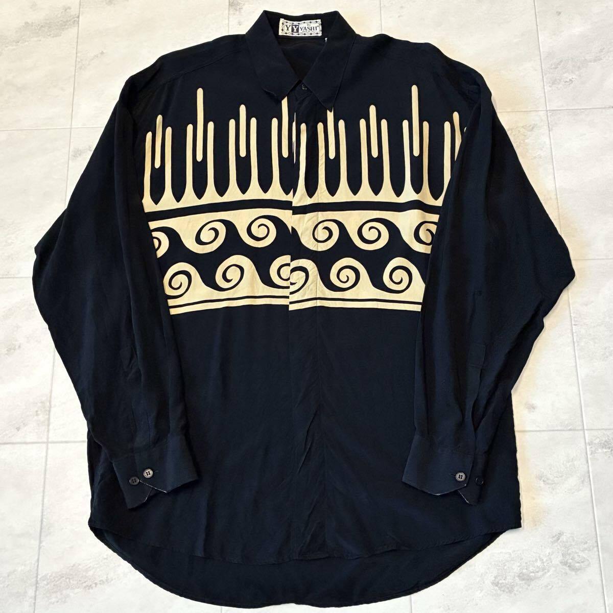 - ITALY製 YASHI 柄シャツ レトロ アート ビンテージ 長袖シャツ レーヨン100%
