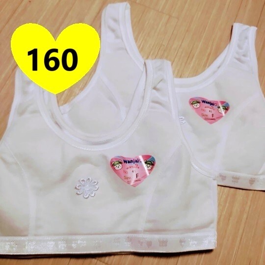 - 160 2枚 ハーフトップブラ 白 スポーツブラ タンクトップ ジュニア ファースト 女の子 肌着 小学生 インナー キャミソール
