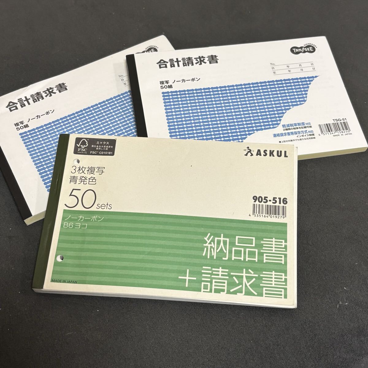 - 納品書請求書 合計請求書 3冊セット B6 複写 ノーカーボン 未使用新品&少し使用品 たのめーる 大塚商会 アスクル