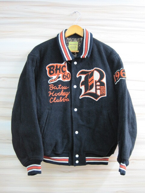 > 5125 MEN'S BA-TSU メンズ バツ ブルゾン サイズL ブラック スタジャン 毛 80%