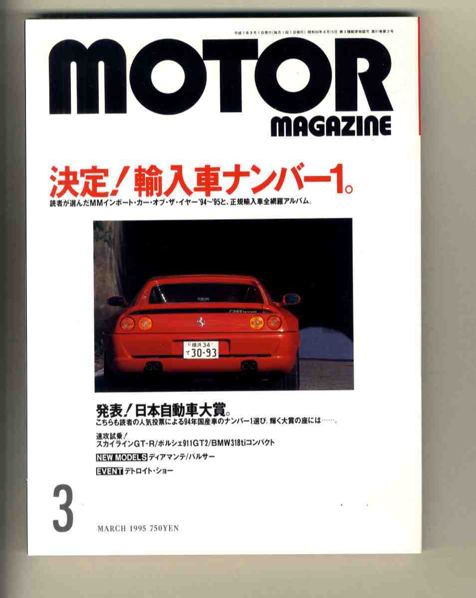 > 【h0484】95.3 モーターマガジンMOTOR MAGAZINE/インポートカーオブザイヤー'94~'95、スカイラインGT-R、ポルシェ911GT2、ディアマンテ..