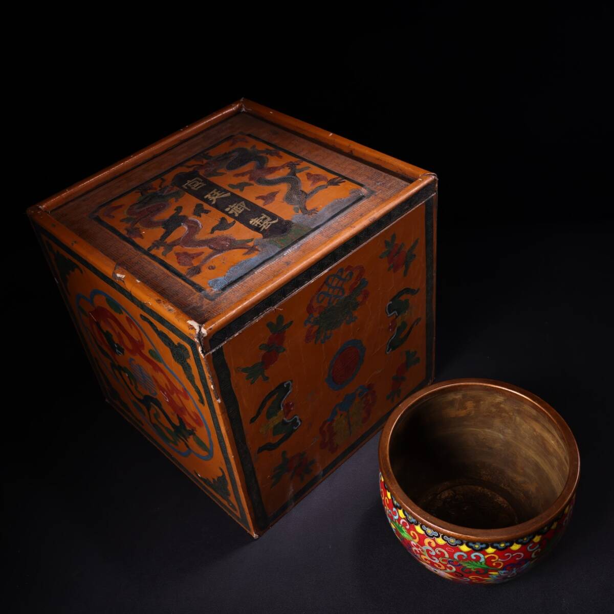 - ▽鴻▽ 銅製 景泰藍 琺瑯彩 花卉紋 聚寶缸 箱付 置物 賞物 古賞物 古董品 時代物 稀少珍品 中国古玩 中国古美術