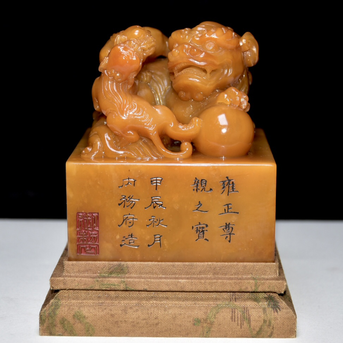 - ▽鴻▽清朝時代 寿山石 田黄石彫 雍正尊親之寶 瑞獣鈕寶璽印章 雍正甲辰内務府造 箱付 時代物 中国古美術 骨董品