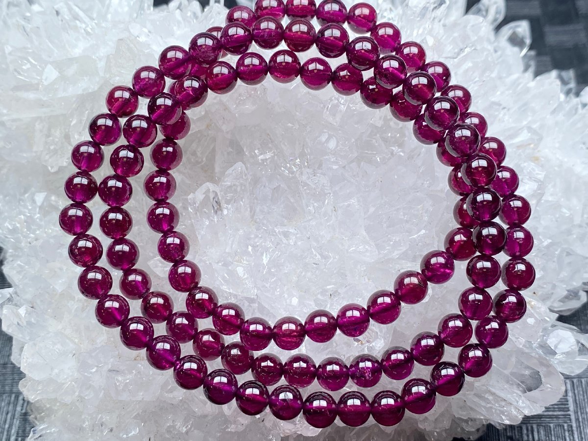 > 即決 0621a233 天然石【45Aワイン色ロードライトガーネット】3重巻き 5.5mm 54cm(新品)